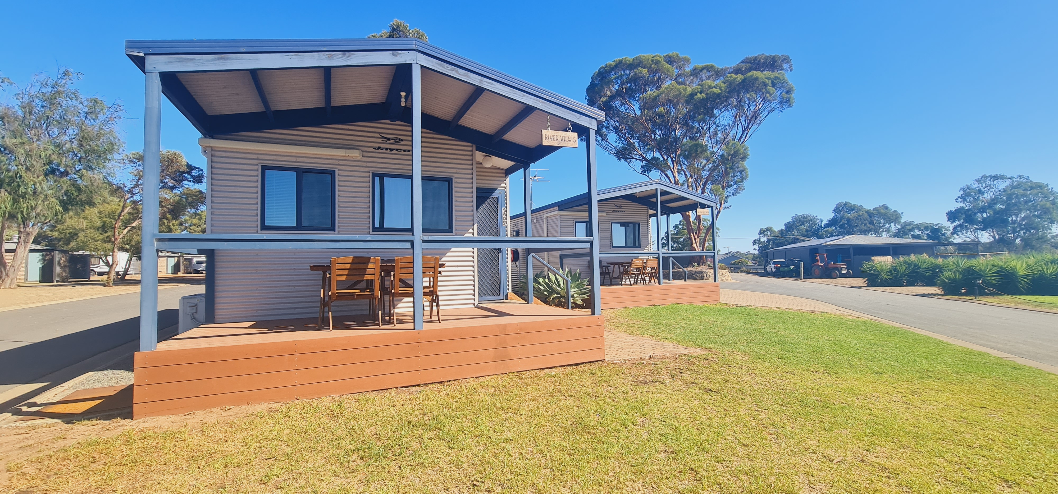 Experience the best of the Murray in our Riverview cabin. Elevated with stunning views over the park’s lush lawns and the river. The Panorama Patio offers the perfect vantage point to watch the kids on the jumping pillow right from your private deck.